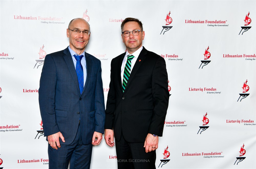 Guests applauded the awarding of a member of the LF Board, former President and the Chairman of the LF Board, Marius Kasniūnas with receiving the “Lithuanian Diplomacy Star”, a badge of honor from the Ministry of Foreign Affairs of the Republic of Lithuania, which was presented by Ambassador Rolandas Kriščiūnas