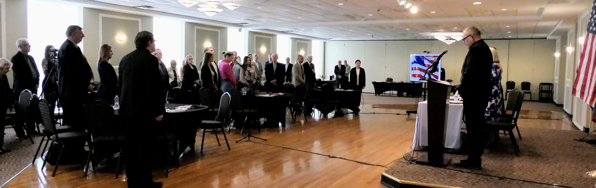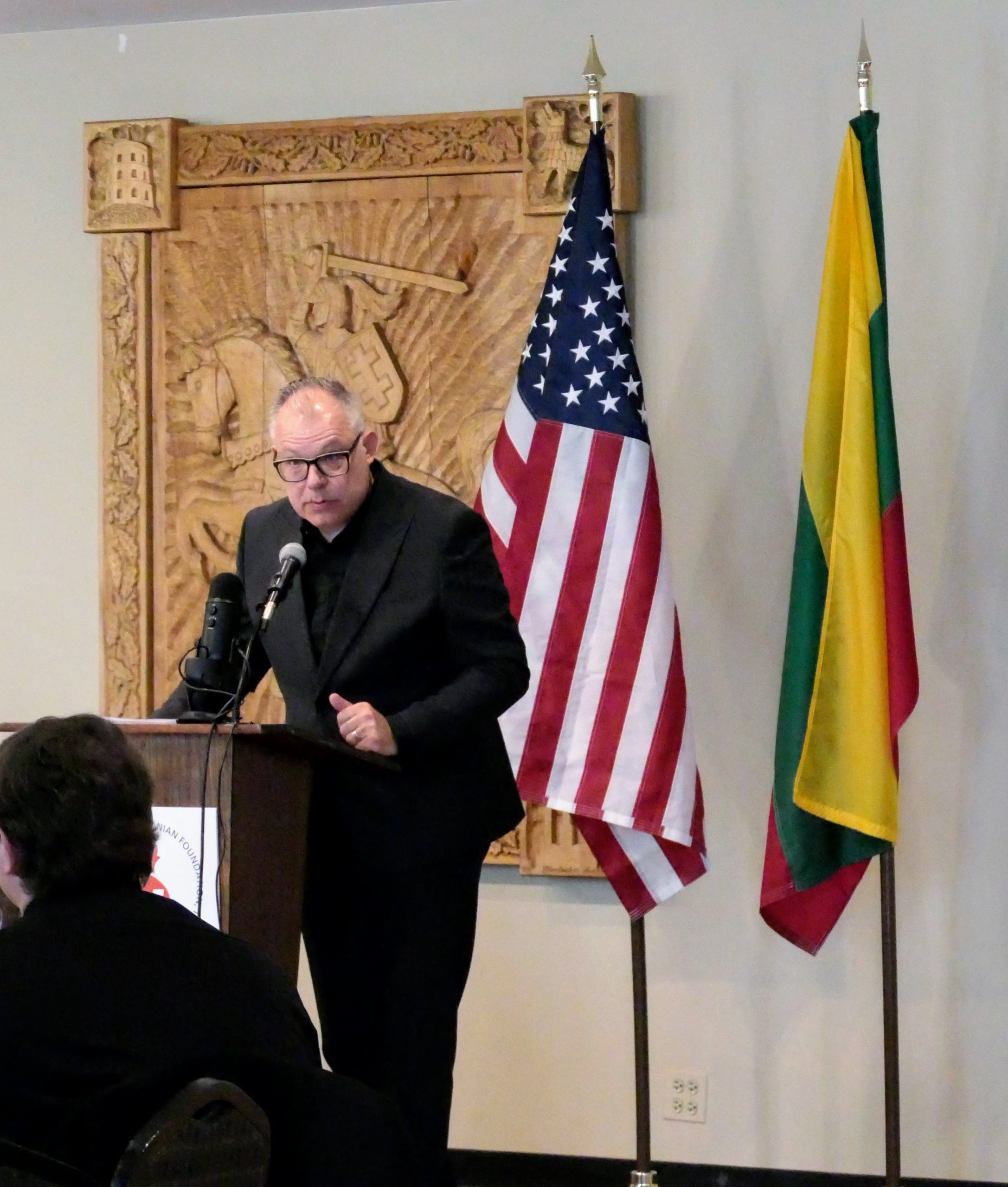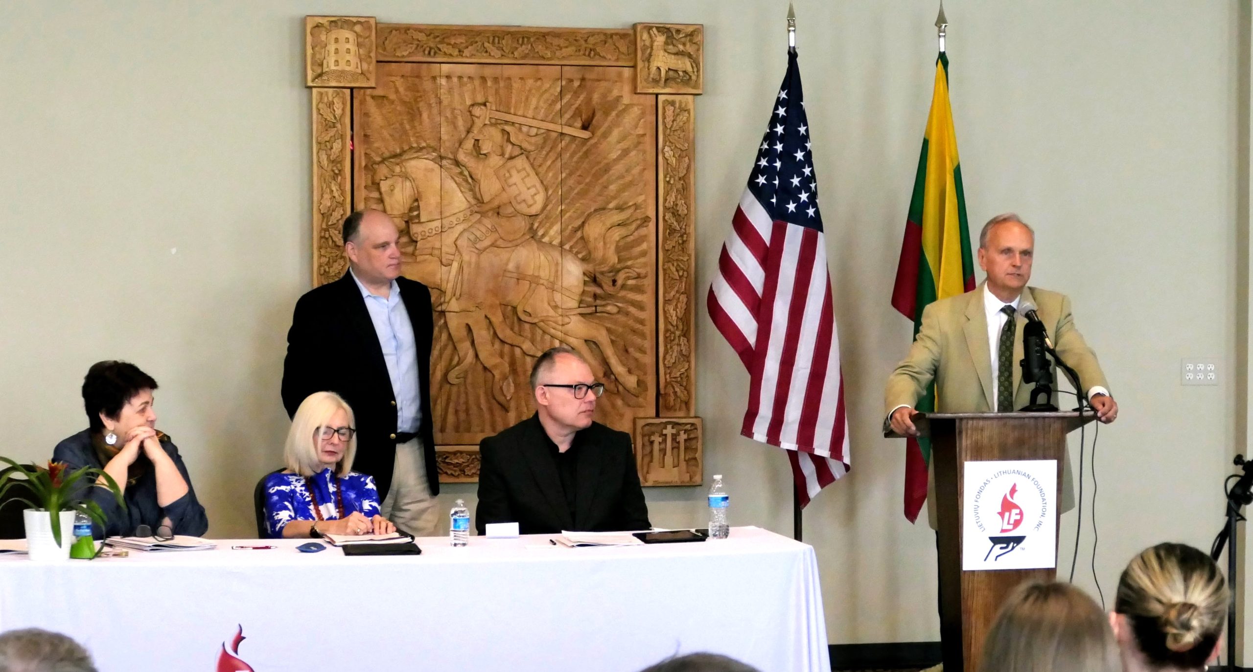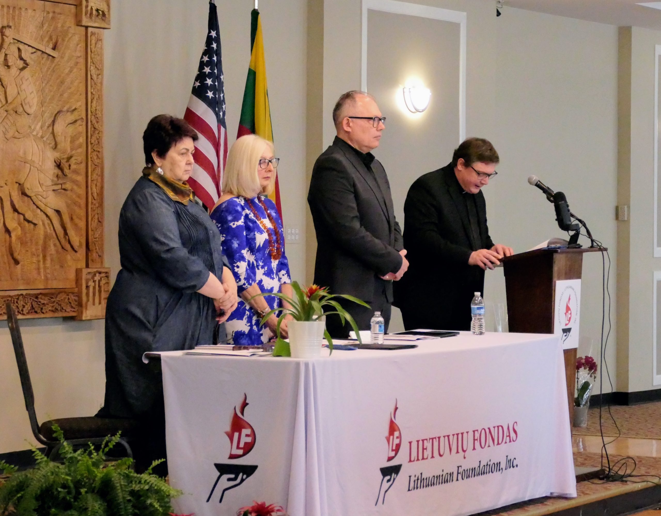 Chairman of the LF Board of Directors Tauras Bublys opened the meeting. Following the United States and Lithuanian national anthems, Bublys introduced the presidium members and guests of honor. Vaidas Lukoševičius SJ, Director of the Blessed Jurgis Matulaitis Mission, read the invocation. Everyone paused for a minute of silence to honor members deceased between April 2023 and April 2024.