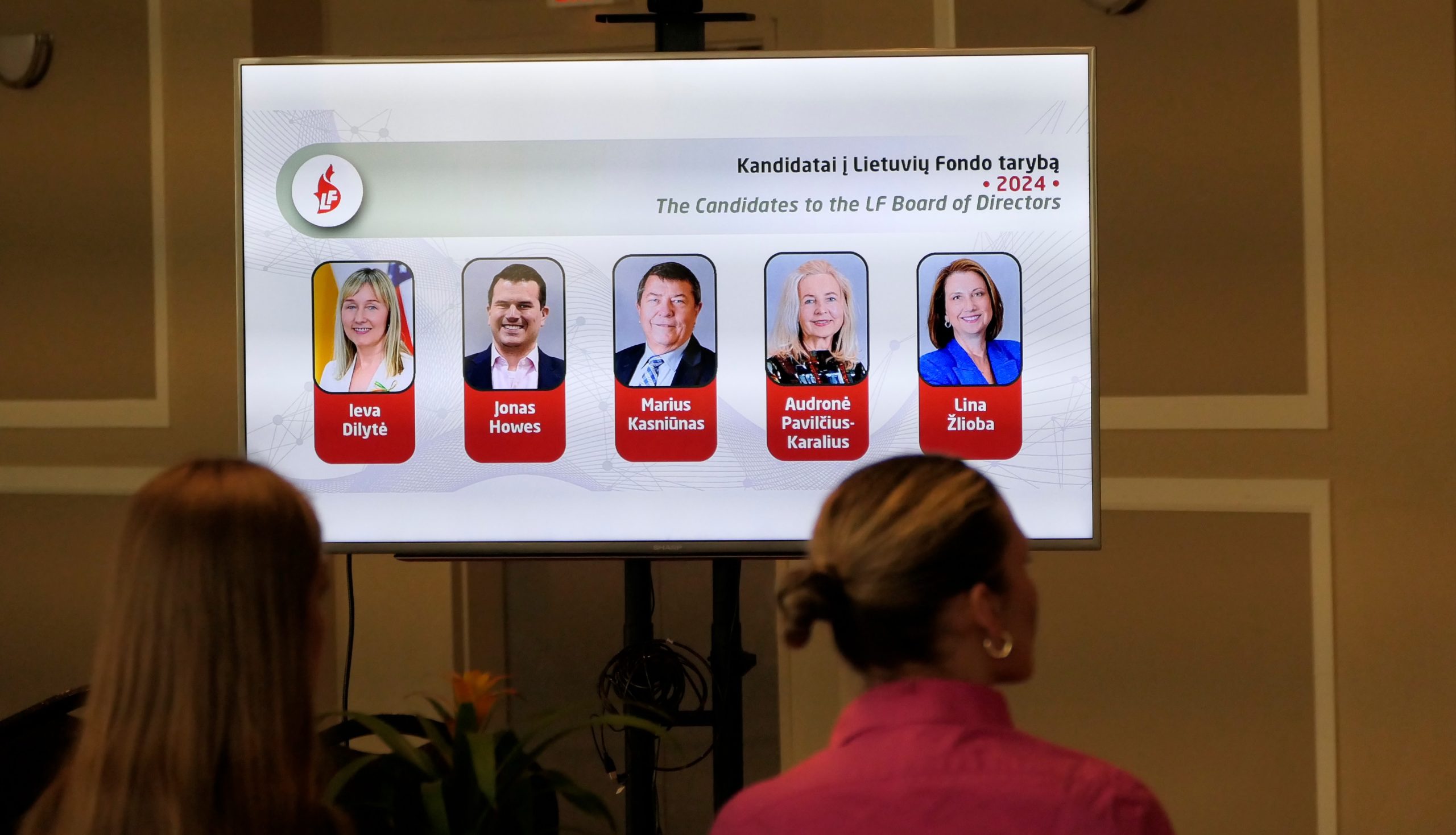 Saulius Čyvas, Chairperson of the Nomination Committee presented the LF Board of Directors candidates. Chairman of the LF Board Tauras Bublys, LF President Audronė Pavilčius-Karalius, Chairperson of the Finance Committee Gintaras Vaišnys along with LF financial advisor Paulius Majauskas, Treasurer Laima Kilienė, and Chairperson of the Development Committee Jonas Howes all read announcements about LF activity. Chairman of the LF Grants Commission Juozas Kapačinskas sent a written announcement read by Dalius Vasys.