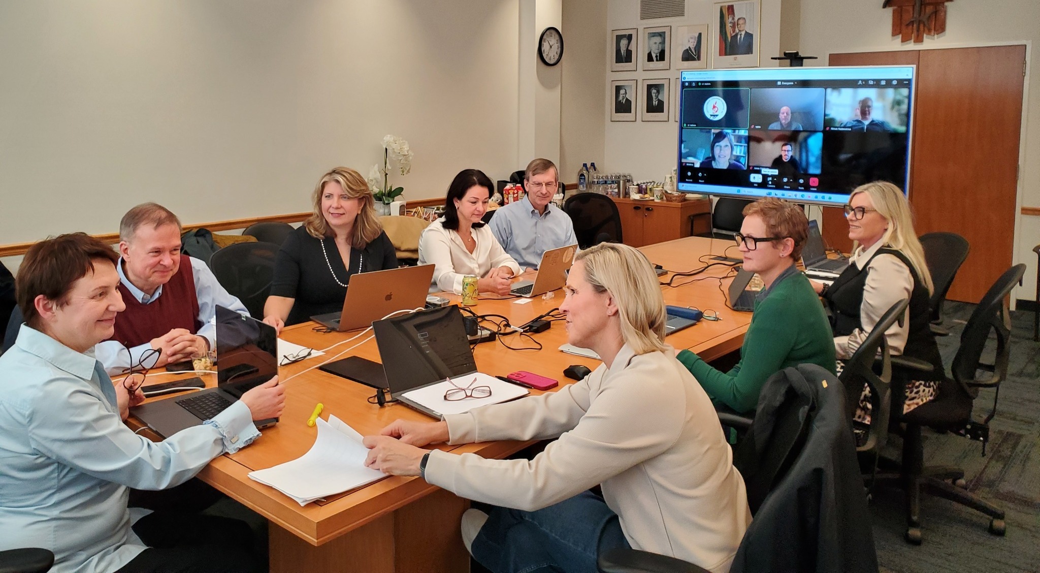 LF Grants Commission Meeting on May 18, 2025 (from left): Žygintas Janus, Artūras Žilys, Marius Kasniūnas, Ingrida Strokovas, Tauras Bublys (Chairman of the Grants Commission), Laura Garnytė, Saulius Čyvas, Dalius Vasys.
