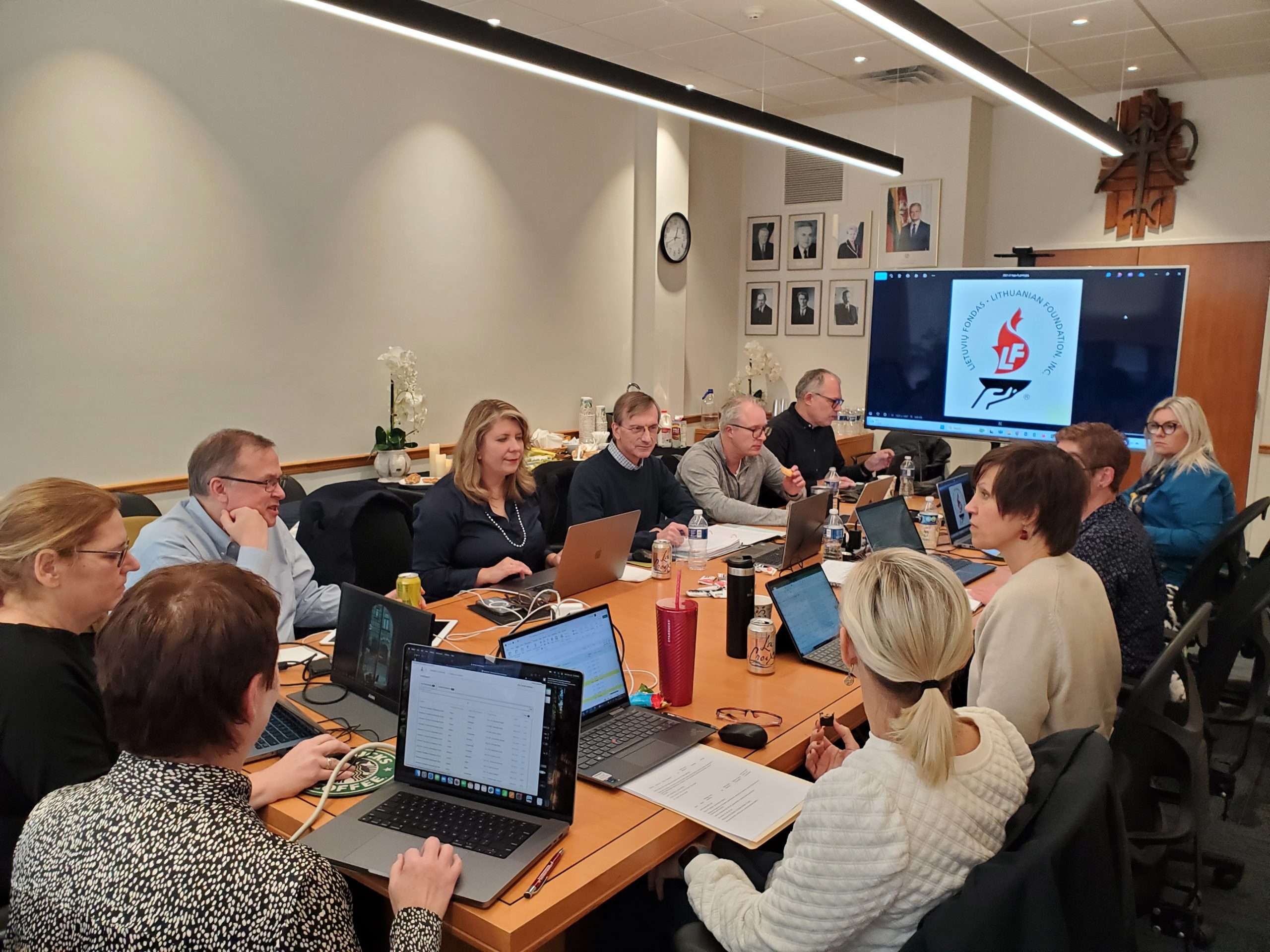 - Pelno skirstymo komisijos posėdis 2024 m. gegužės 18 d. Pelno skirstymo komisija (iš kairės): Dalius Vasys, Žygis Janus, Ingrida Strokovas, Marius Kasniūnas, Greta Patapovaitė-Bryant, Tauras Bublys (PSK pirmininkas), Laura Garnytė, Lina Žlioba ir Juozas Kapačinskas (LF tarybos pirmininkas).