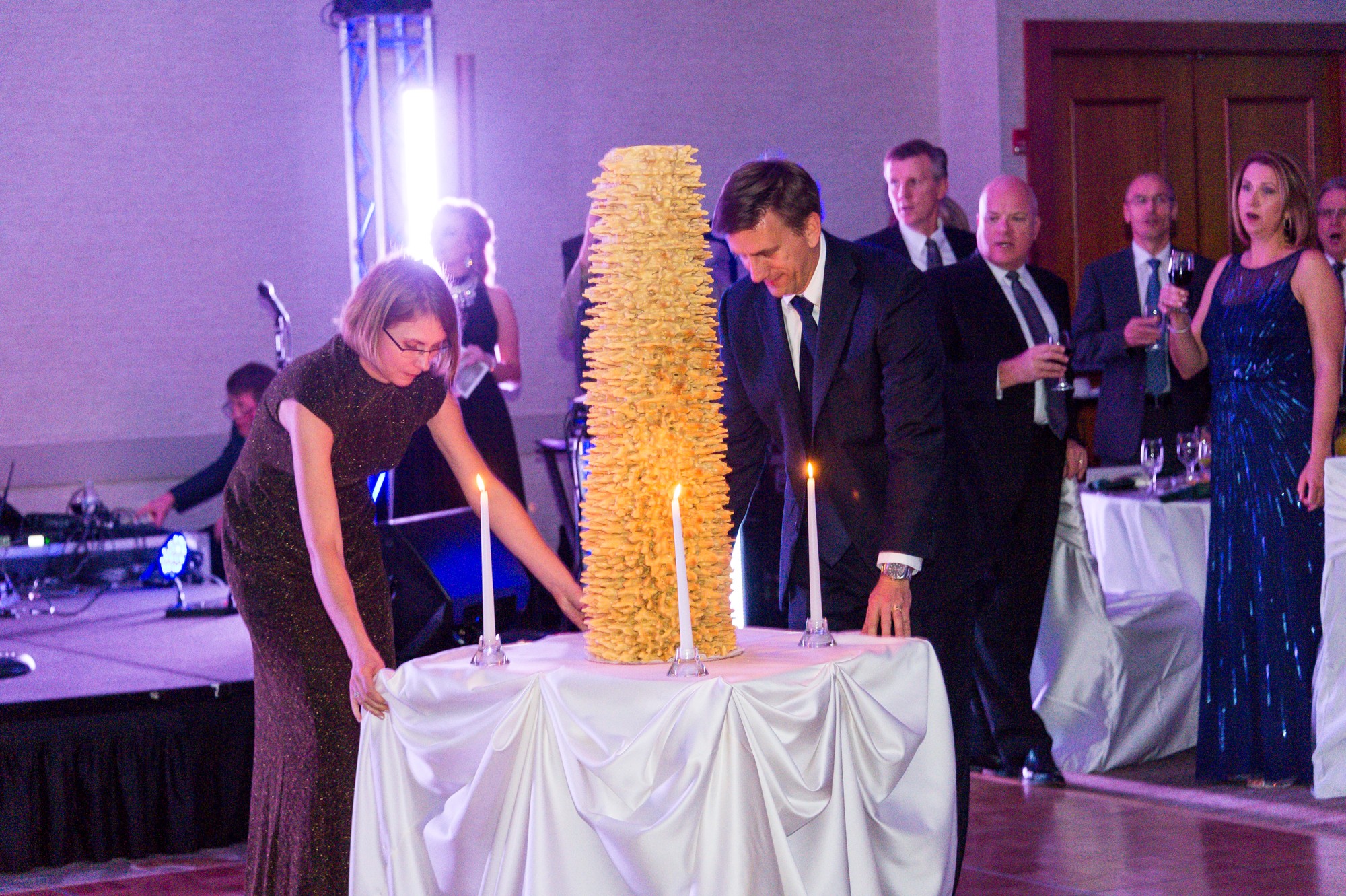 Koks gi pokylis be šventinio torto? Į salę buvo įvežtas didžiulis šakotis. LF valdybos pirmininkui Mariui Kasniūnui pasakius tostą, sugiedota ,,Ilgiausių metų“. Vakaro programą puikiai vedė LF narė ir stipendininkė Gabrielė Bieliauskaitė.