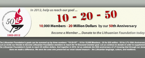 Lietuvių Fondą per 50 metų rėmė apie 9 tūkstančiai narių, tarp kurių buvo ir stambių aukotojų, tačiau didžiausias skaičius – pastovūs ir dosnūs aukotojai. Iš viso nuo 1962 m. iki 2011 m. rugsėjo 30 d. Lietuvių Fondui suaukota 19,438,199 dol. Lietuvai atkūrus nepriklausomybę, švietimo reikalams Lietuvos valstybei iš šios sumos buvo paaukota 1,354,462 dol. Iš metinių palūkanų Fondas yra išmokėjęs daugiau nei 15 mln. dol. metinėms stipendijoms ir lietuviškai kultūrinei bei visuomeninei veiklai, taip pat lituanistiniam švietimui paremti. Šie skaičiai tikrai įspūdingi. Tačiau kasmet prašymų paramai yra gaunama daugiau, nei galima patenkinti. Dosnių narių skaičius auga labai pamažu, o tų, kurie apleidžia šį pasaulį, vis daugėja. Tik augantis naujų narių ir jų įnašų skaičius užtikrins Lietuvių Fondo gyvastį dar ateinančius 50 metų. Todėl labai kviečiame jaunimą įsijungti į Lietuvių Fondo narių gretas ir užtikrinti, kad jų pačių veikla, vaikų lituanistinis švietimas ateityje nepritrūktų LF paramos. LF kasmet dosnia, daugiau nei 100,000 dol. parama remia lituanistines šeštadienines mokyklas, taip pat kitus jaunimo projektus, pavyzdžiui, Tautinių šokių šventes, kuriose dalyvauja per 1,000 šokėjų iš visos Amerikos. Š. m. liepos 1 d. Bostone vyks jau keturiolikta Tautinių šokių šventė.