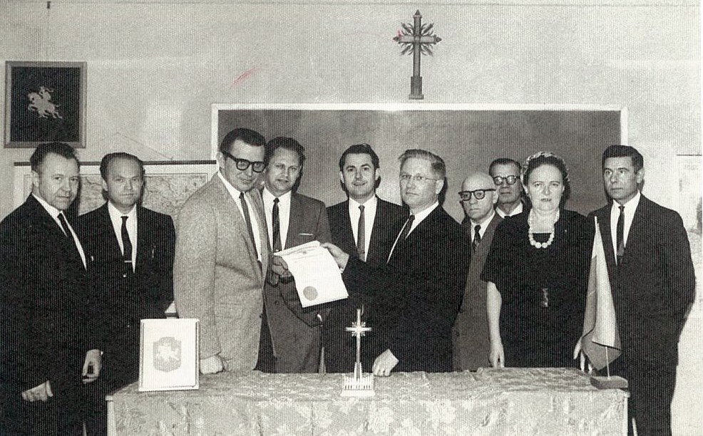 Pirmasis LF tarybos pirmininkas dr. Antanas Razma ir pirmasis LF valdybos pirmininkas Teodoras Blinstrubas.